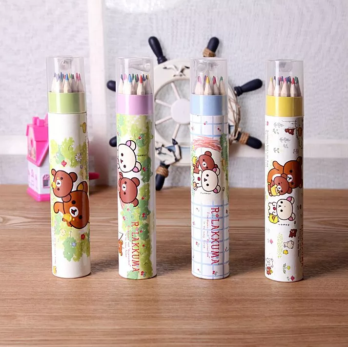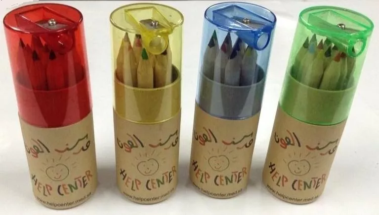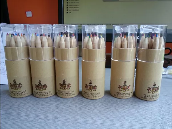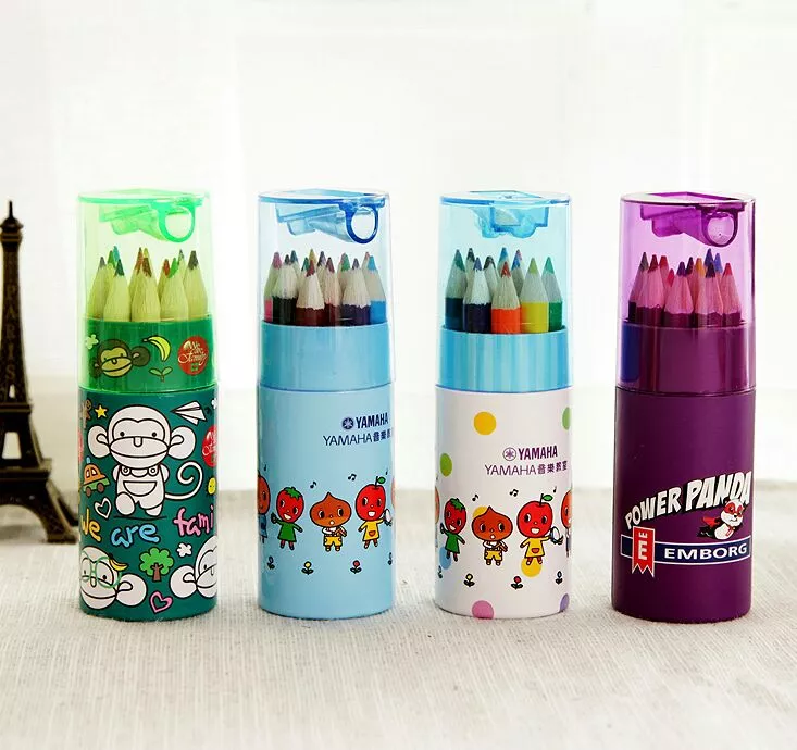● 6 color 12 color 24 color log color pencil cylinder with pen sharpener can be printed or hot stamped LOGO according to customer needs