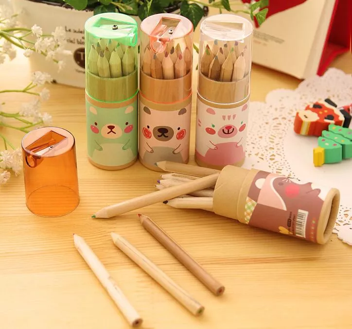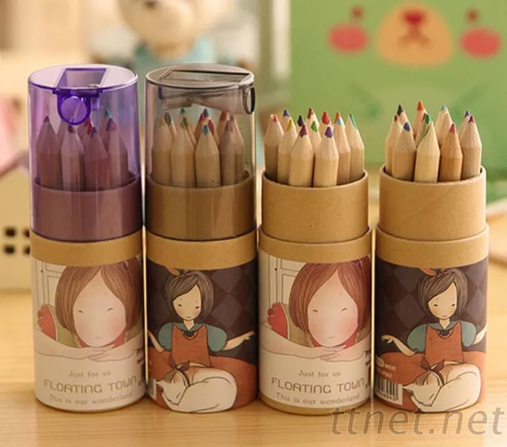 - 6 color 12 color 24color log color pencil cylinder with pen sharpener